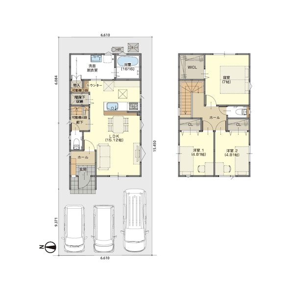 15.12帖のLDKを中心に、家族が自然と集まりやすい間取り設計。対面キッチンを採用し、家事をしながらでも会話が生まれる、暮らしやすさに配慮した住まいです。