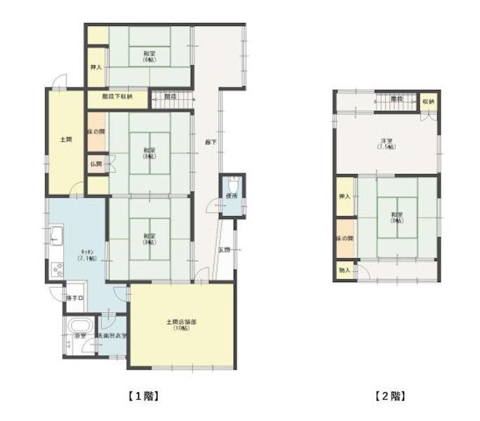 | 間取り | 6K その他 10.0帖 1室 / 和室 8.0帖 2室 / K 7.1帖 1室 / 和室 6.0帖 1室 / 和室 8.0帖 1室 / 洋室 7.5帖 1室 / |