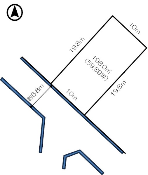 | 私道負担・道路 | 一方 (南西側6.8m 間口10.0m) |