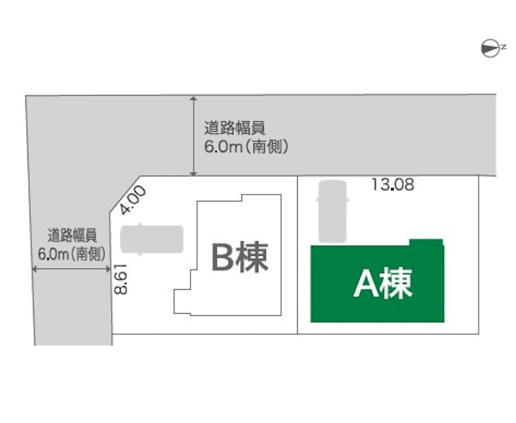 | 私道負担・道路 | 私道負担:なし 道路幅:6.0m(西側)、6.0m(南側) |