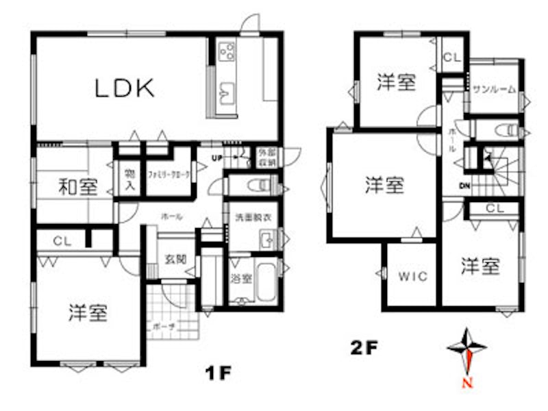 | 建物の特徴 | 2世帯住宅, 収納が多い, 家事ラク動線, ウオークインクローゼット, シューズインクローゼット, 外部収納, 浴室乾燥機, 和室あり, サンルームあり |