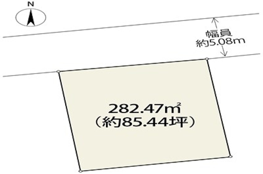 | 私道負担・道路 | 負担なし・幅員 : 北側 約 5.08m 公道、 間口 : 約 16.00m |
