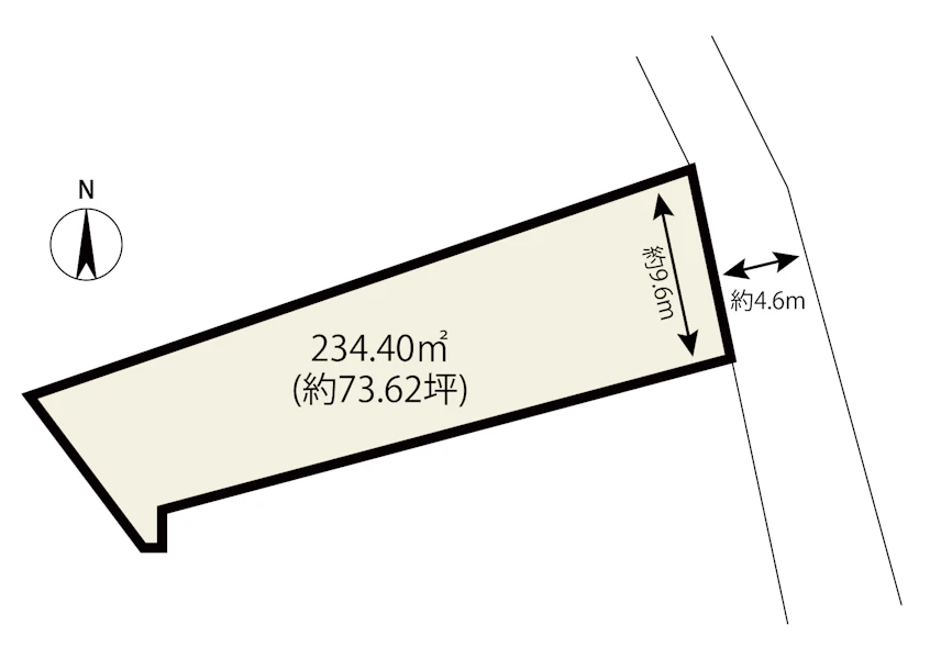 | 私道負担・道路 | なし・幅員 : 北東側 約4.6m 公道、 間口 : 約9.6m |