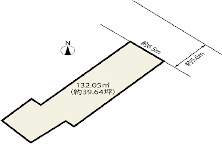 | 私道負担・道路 | 負担なし・ 幅員 : 北東側 約 5.6m 公道、 間口 : 約 6.5m |