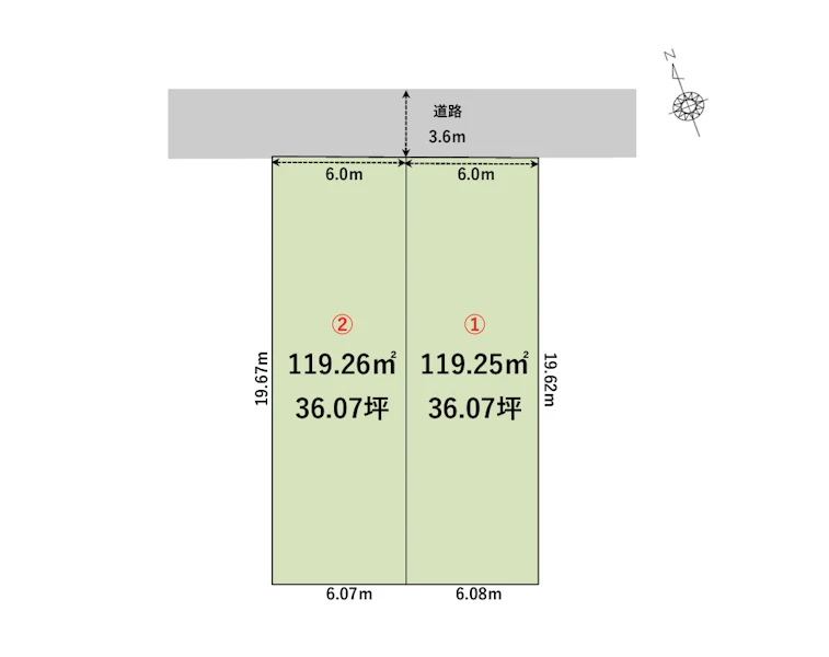 | 土地面積 | 119.25 〜 119.26m² (36.07 〜 36.07坪) |