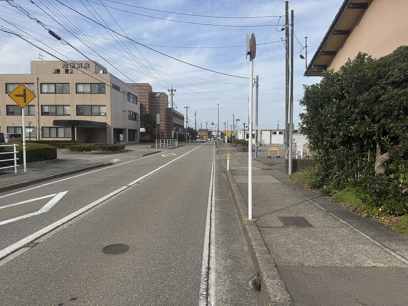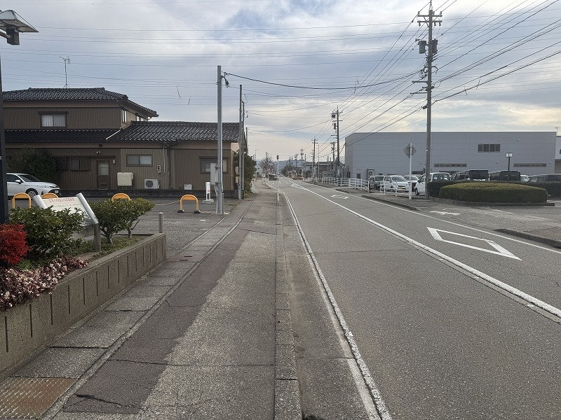 約90坪の広い土地 現地西側には179号線があり、野々市中心街方面・鶴来方面へのアクセス良好 車で約5分にイオン野々市南店・ホームセンタームサシ金沢南店など商業施設多数