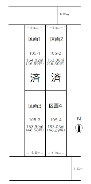 | 土地面積 | 153.03 〜 153.99m² (46.29 〜 46.58坪) |