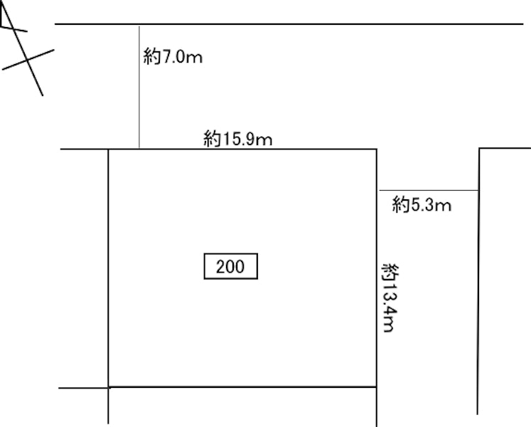 | 私道負担・道路 | ●北向き 約7m 間口 約15.9m ●東向き 約5.3m 間口 約13.4m |