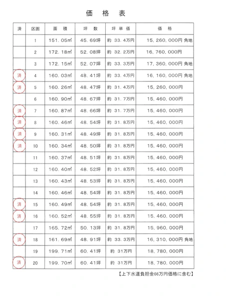 ・上下水道負担金売買価格に含む・確定測量の結果面積増減の可能性あり