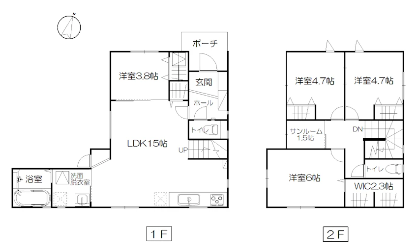 小学校、スーパー徒歩圏内♪15帖のLDKに加え、2階にはサンルームとWICを完備し、家事動線と収納力を両立しています!カーポート付きで雪の日も安心です♪