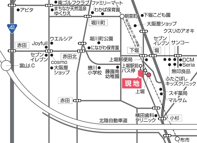 | 住所 | 富山県富山市富山市堀字中筬割16-17(クローバータウン上堀7号地) |