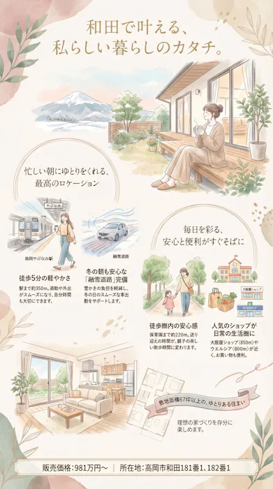 【共働き世帯の最適解】イオン車3分&小中徒歩圏内の「タイパ」立地。補助金最大137万円対象×融雪完備、利便性を極めた全33区画の街。