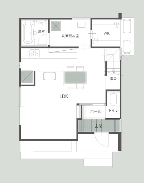 ▫モルタル調フロアタイルや上質グレーでホテルライクな内装