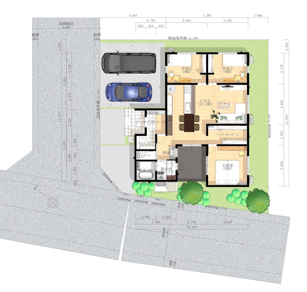 | 私道負担・道路 | 前面道路6m(アスファルト舗装) |