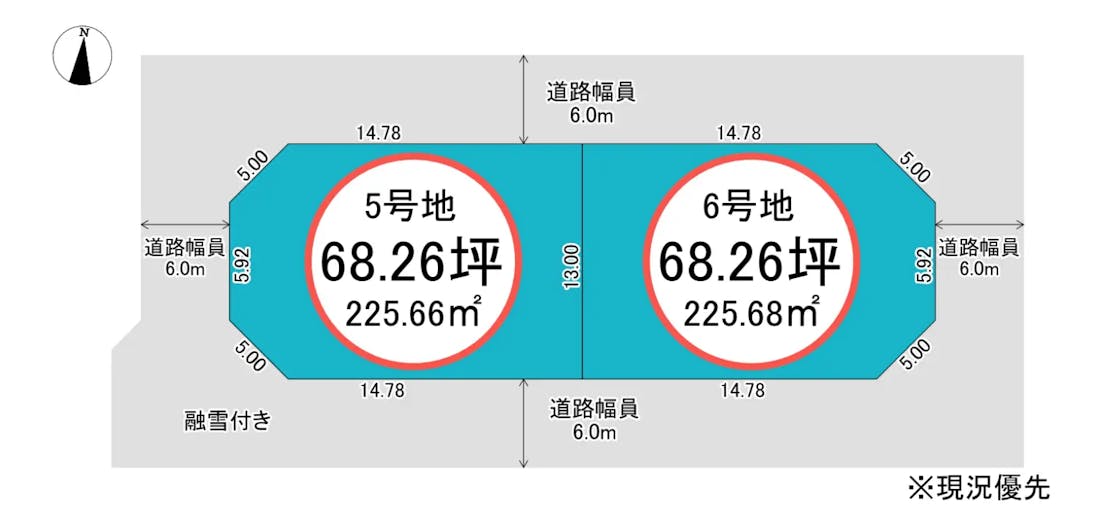 225.66 〜 225.68m² (68.26 〜 68.26坪)